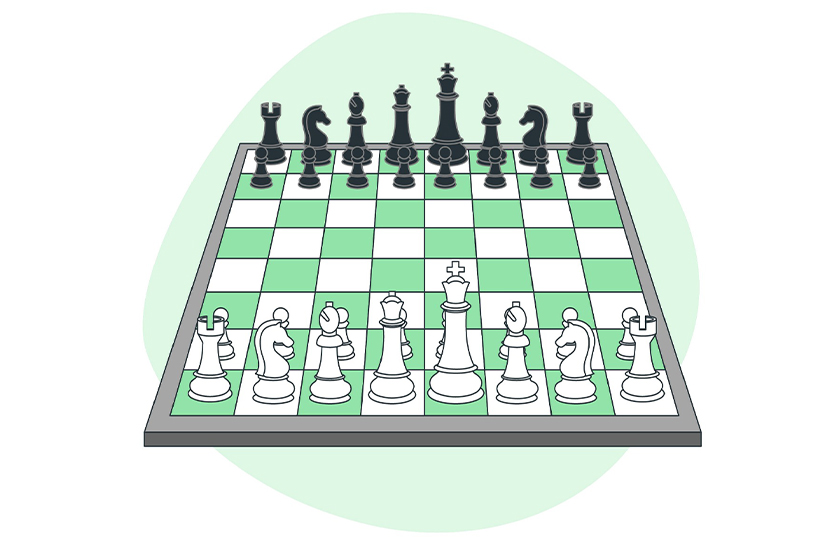 Knight – Moves in an ‘L-shape,’ two squares in a straight direction, and then one square perpendicular to that.